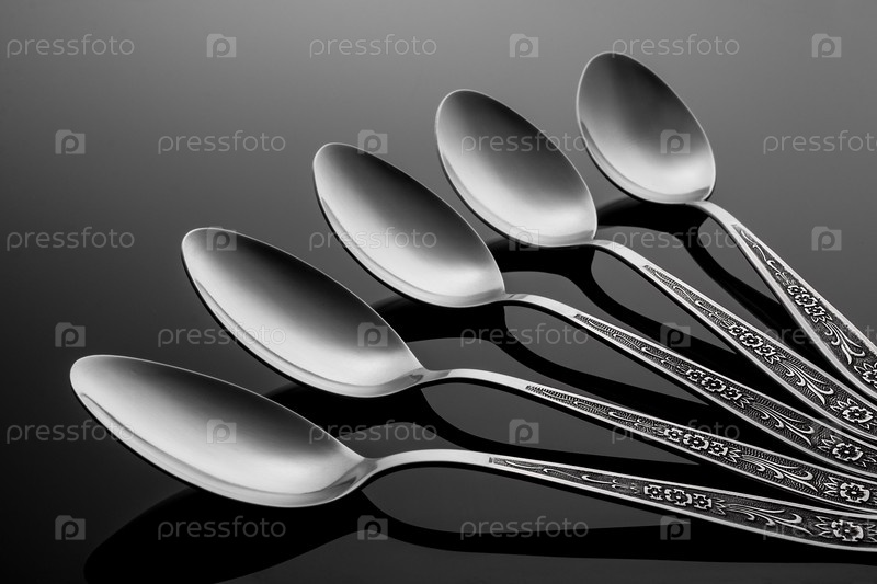 Набор ложек на черном фоне