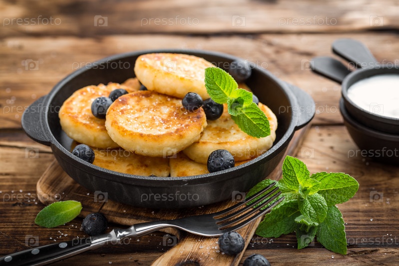 Вкусные творожные блины или сырники со свежей черникой