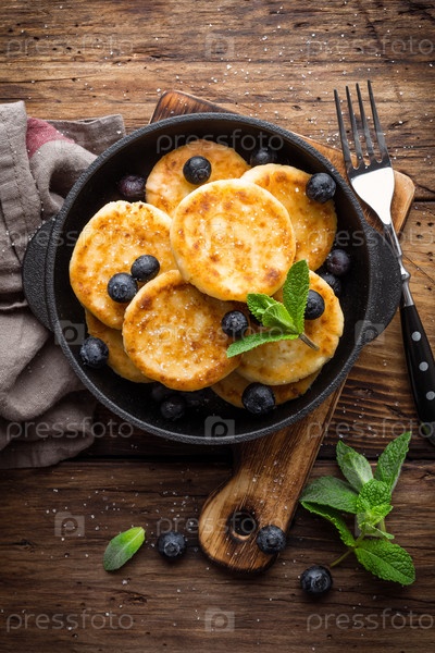 Вкусные творожные блинчики или сырники со свежей черникой