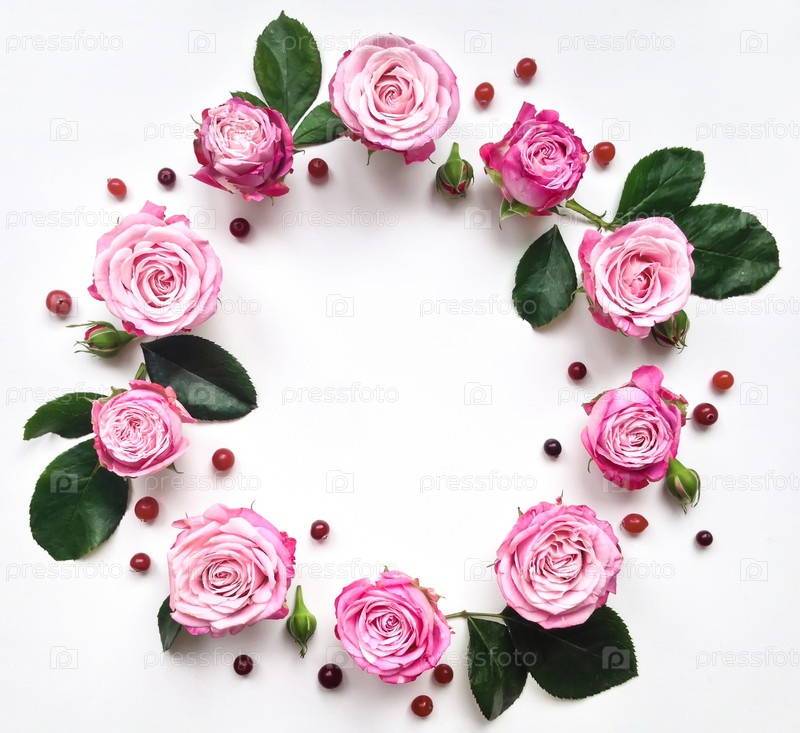 Декоративная рамка с розами и ягодами на белом фоне