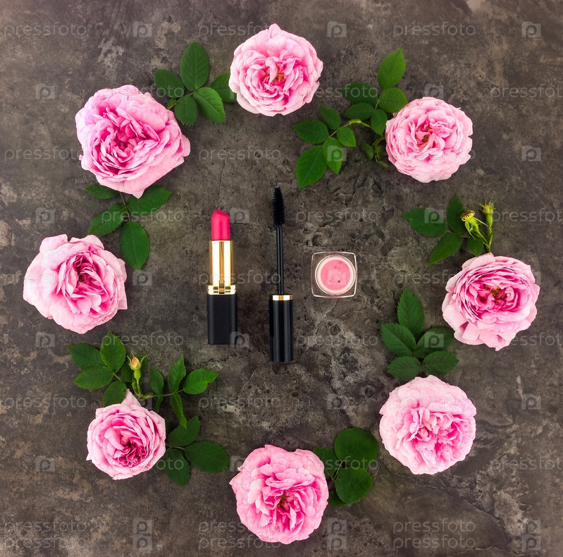 Декоративная композиция с косметикой и цветами