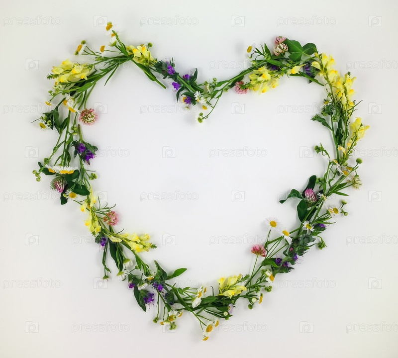 Сердце из цветов и листьев на белом фоне