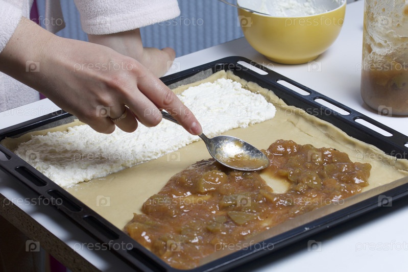 Пирог с начинкой из творога и яблочного джема