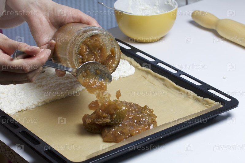 Пирог с начинкой из творога и яблочного джема