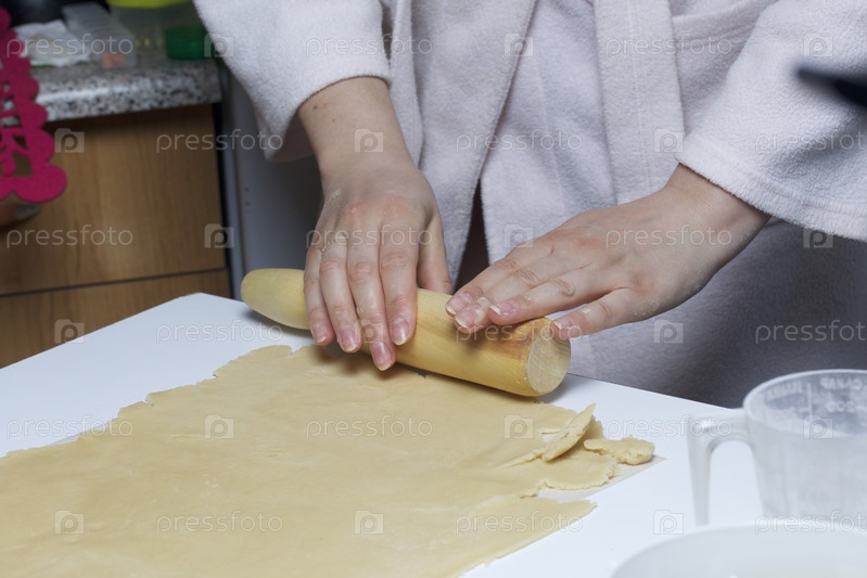 Женщина готовит тесто для пирога