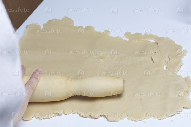 Женщина раскатывает тесто со скалкой
