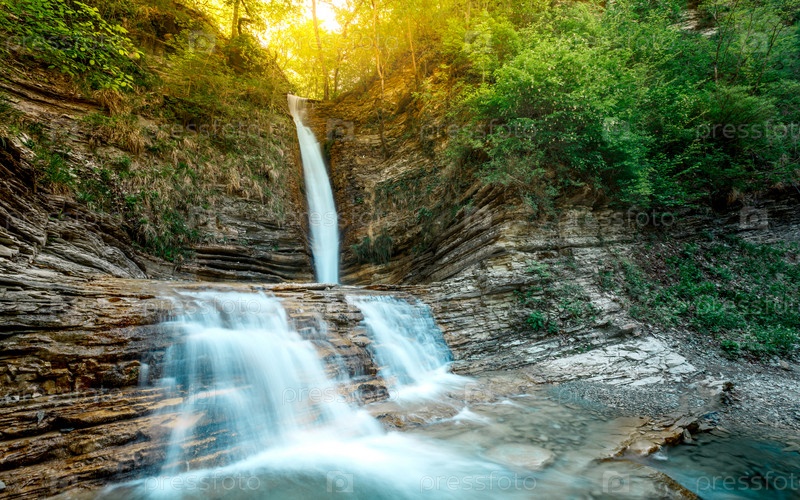 Живописный вид на водопад Шнурок