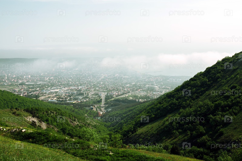 Вид на город с вершины горы, Северный Кавказ