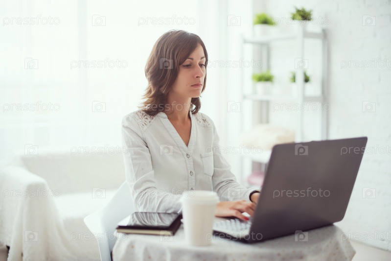 Фрилансер, работающая на ноутбуке