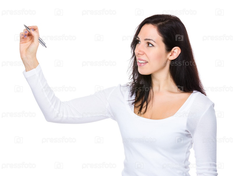 Молодая женщина пишет ручкой