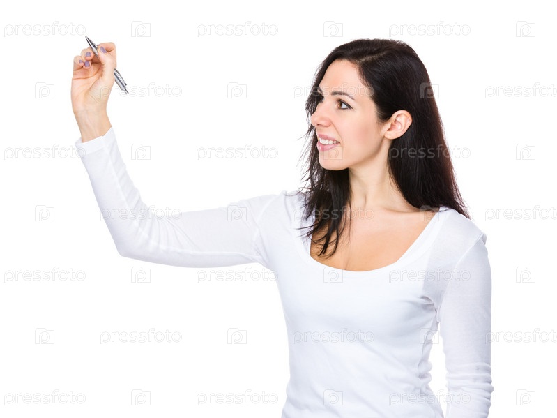 Женщина пишет на мнимой панели