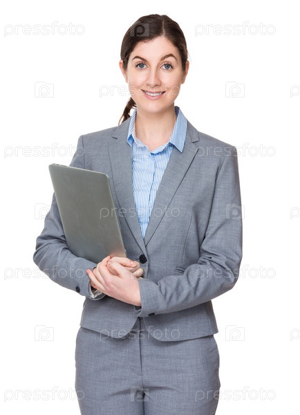 Брюнетка с портативным компьютером