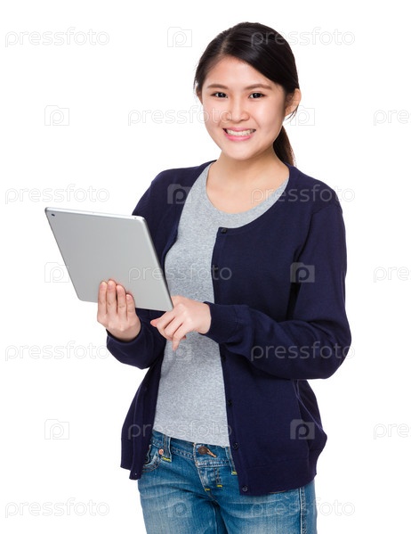 Использование планшета азиатской женщиной