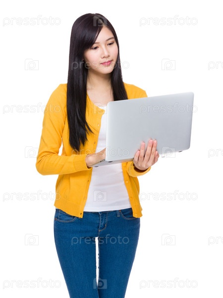 Женщина использует портативный ноутбук