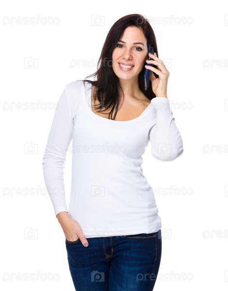 Брюнетка разговаривает по мобильному телефону