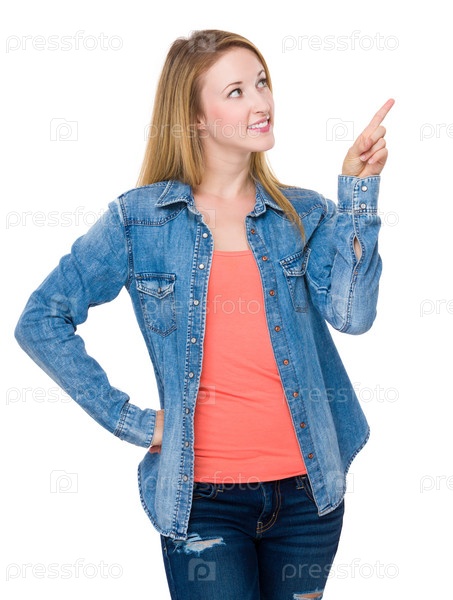 Молодая женщина прикасается к воображаемой кнопке