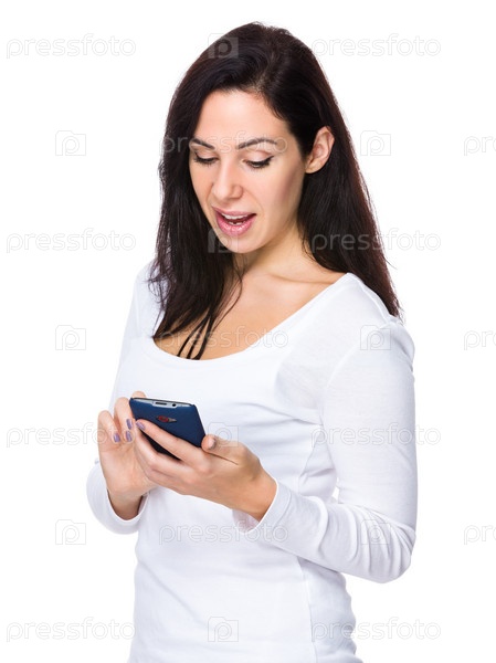 Европейская женщина читает на сотовом телефоне