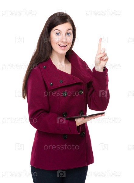 Женщина держит планшет и палец вверх