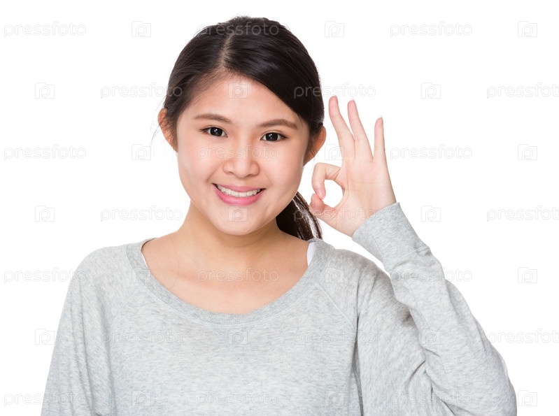 Молодая леди с жестом ОК