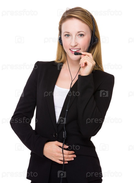 Европейская женщина с гарнитурой для обслуживания клиентов