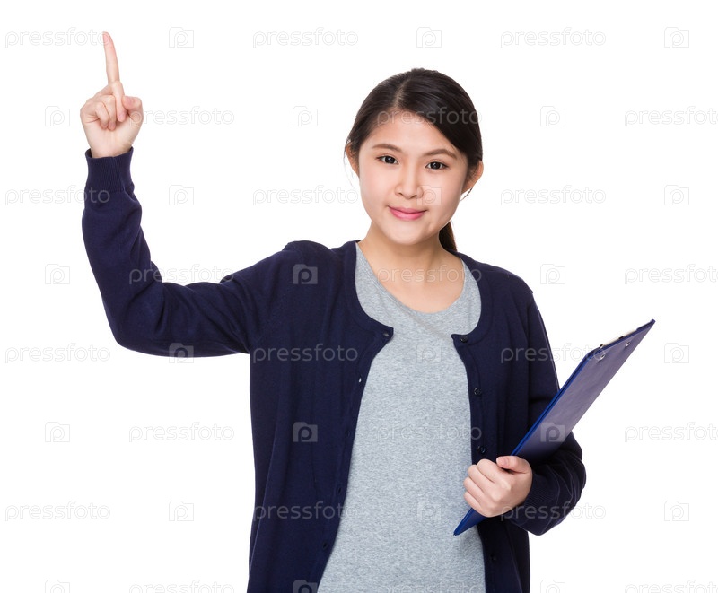 Азиатская молодая женщина с планшеткой