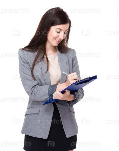 Деловая женщина пишет в планшетке