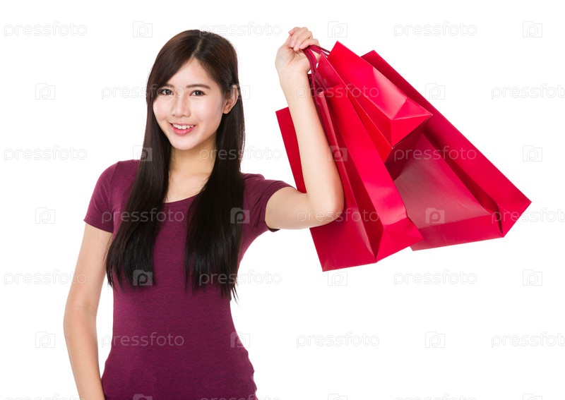 Азиатская женщина с покупками