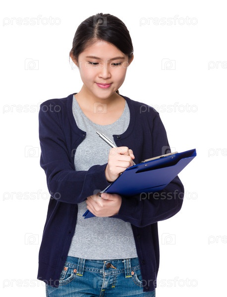 Молодая азиатская женщина записывает