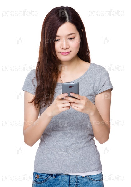 Молодая женщина использует сотовый телефон
