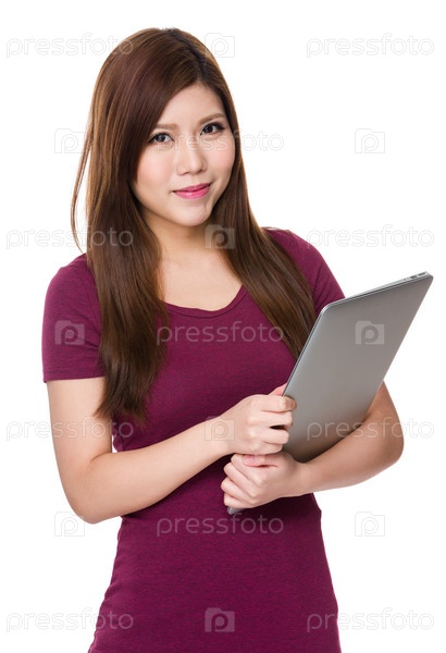 Молодая женщина с портативным компьютером