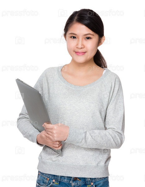 Молодая женщина с портативным компьютером