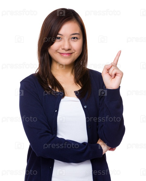 Женщина показывает пальцем вверх
