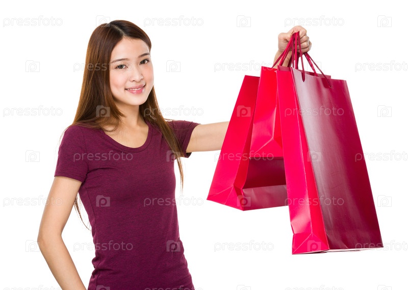 Азиатская женщина с покупками