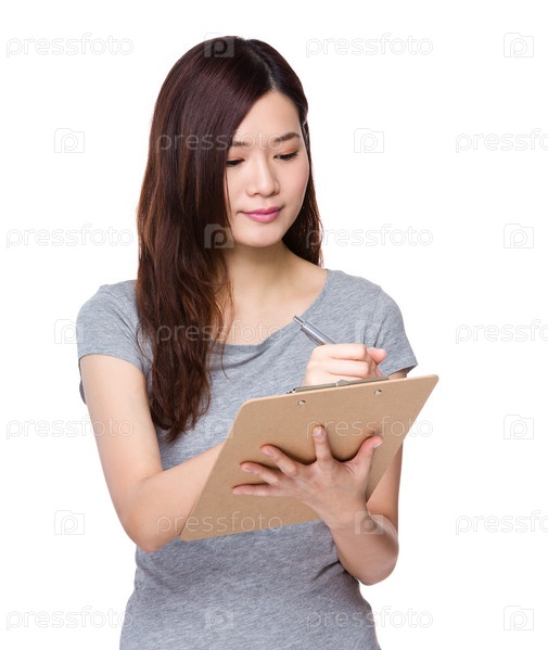 Молодая женщина с планшеткой
