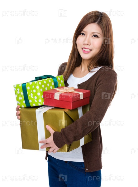 Азиатская женщина с подарками
