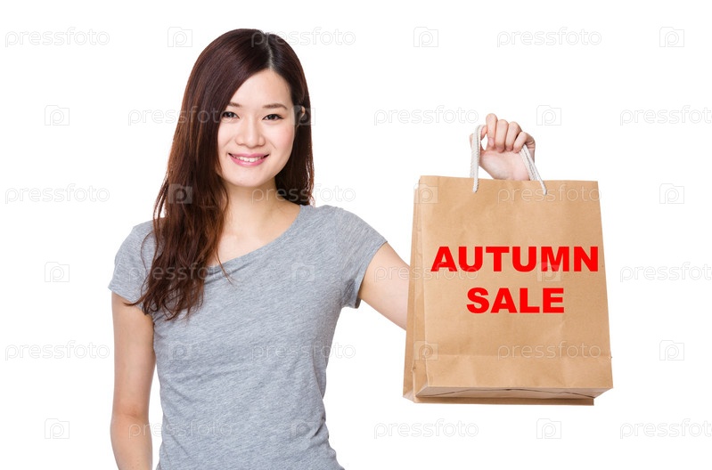 Азиатская женщина с осенними покупками