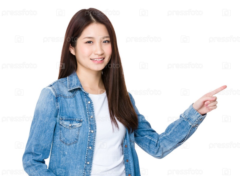 Азиатская женщина указывает пальцем