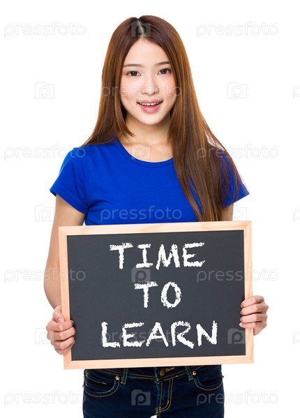 Молодая женщина с черной доской