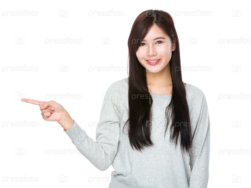 Женщина указывает пальцем в сторону