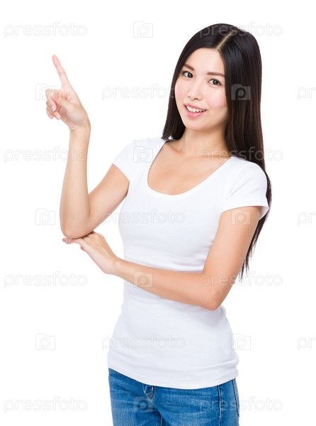 Азиатская женщина, показывая пальцем вверх