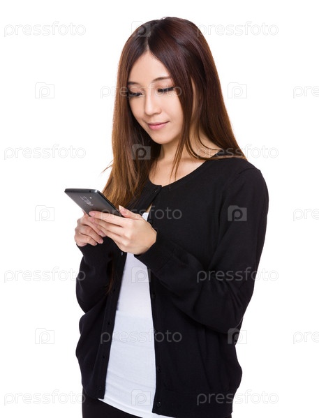 Женщина смотрит на сотовый телефон