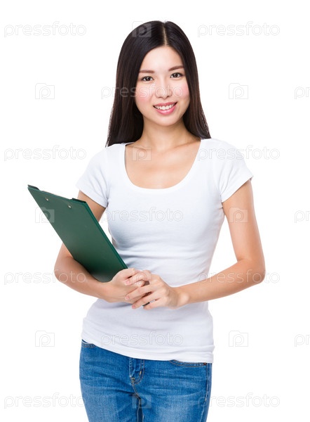 Молодая женщина с планшеткой