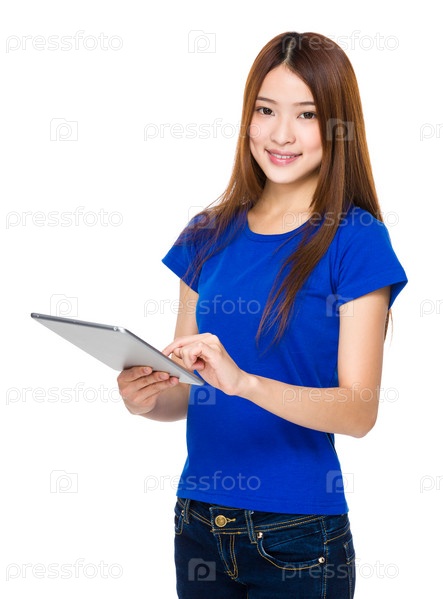 Азиатская женщина использует планшет