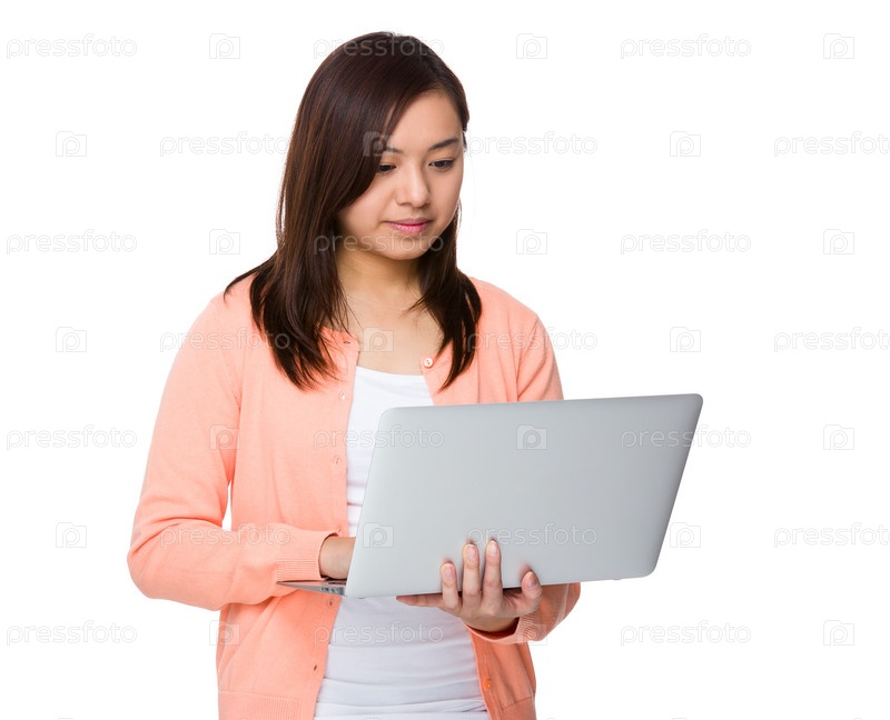 Использование женщиной переносного компьютера