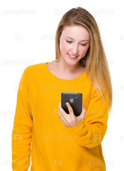 Молодая женщина использует сотовый телефон