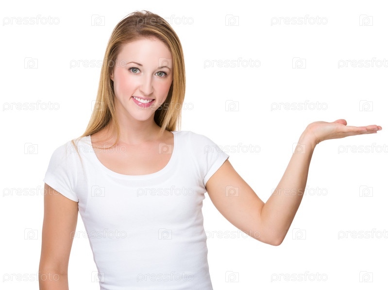 Женщина показывает с открытой ладонью руки