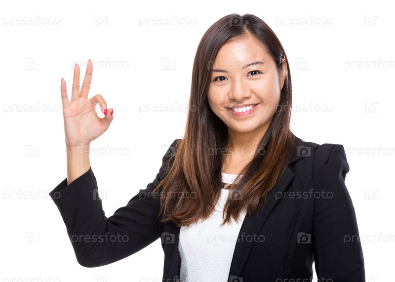 Азиатская деловая леди с жестом ОК