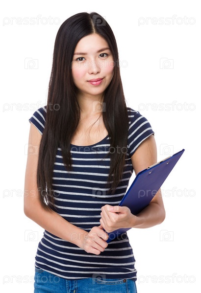 Азиатская женщина с планшеткой
