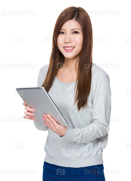 Женщина использует планшетный ПК