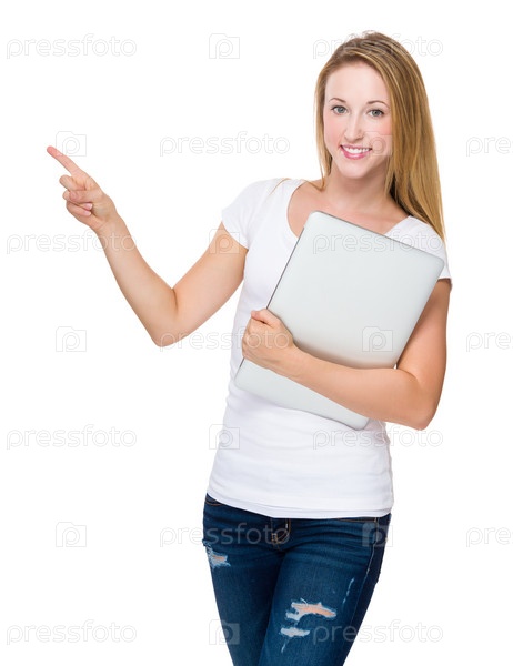 Красивая девушка с портативным компьютером
